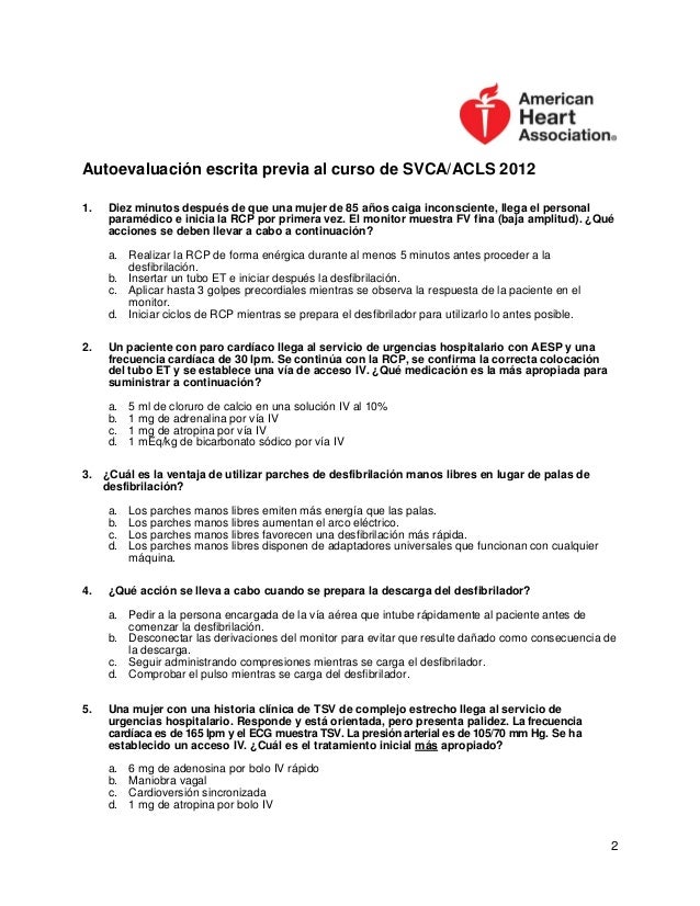 acls pretest aha ucm escrita svca autoevaluación cpr